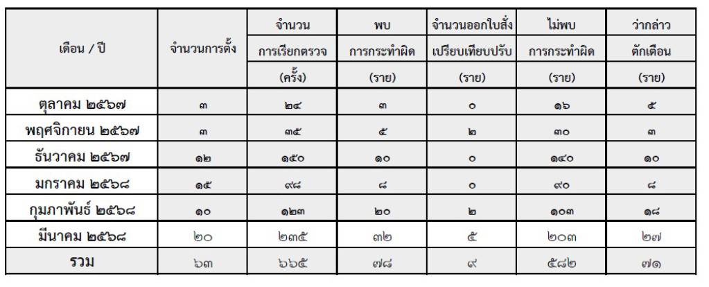 ข้อมูลผลการดำเนินงานในเชิงสถิติการตั้งจุดตรวจ จุดสกัด(ประจำเดือน มีนาคม 2568)