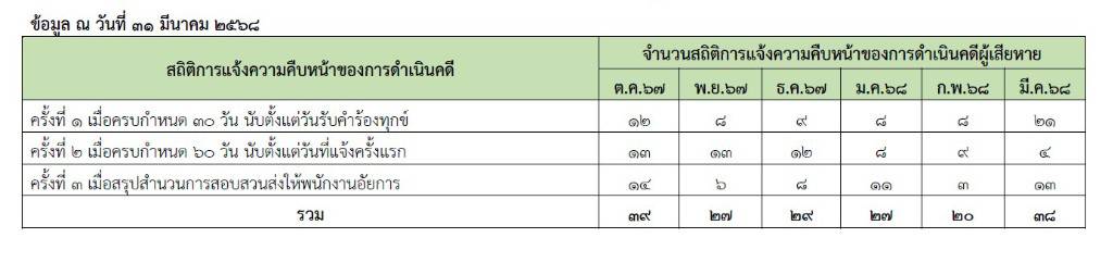 ข้อมูลในเชิงสถิติการแจ้งความคืบหน้าของการดำเนินคดี(ประจำเดือน มีนาคม 2568)
